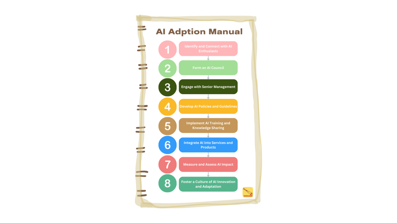 Officialize the Council: Propose the formation of an official AI Council to senior management, highlighting its potential to guide AI integration effectively.